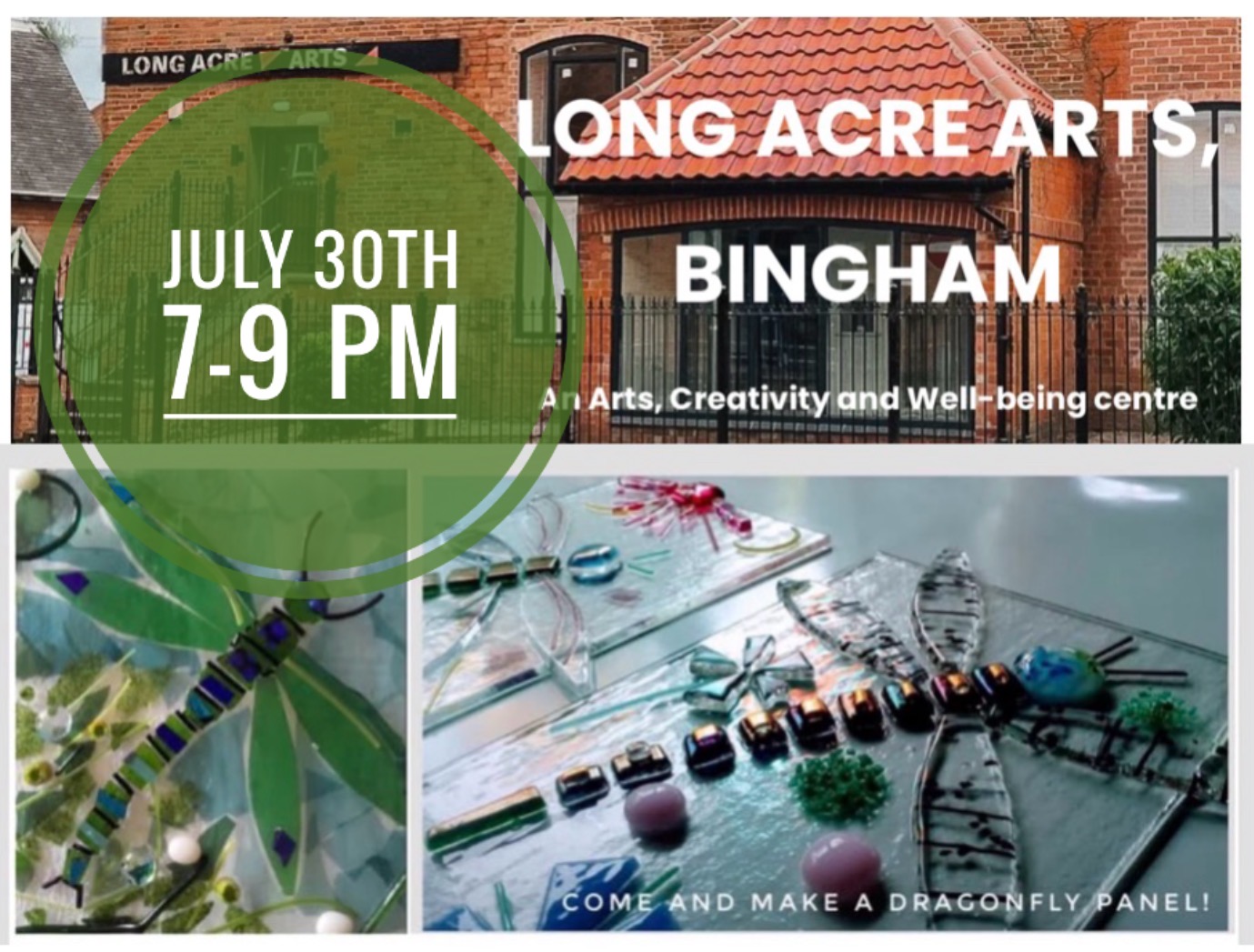 Come along to this relaxing and friendly workshop at Long Acre Arts in Bingham. After a short talk from your lovely tutor, Lucy, you will create a stunning dragonfly panel measuring 10cm x 24 cm. This can be hung, waved, or arched, and costs £28.