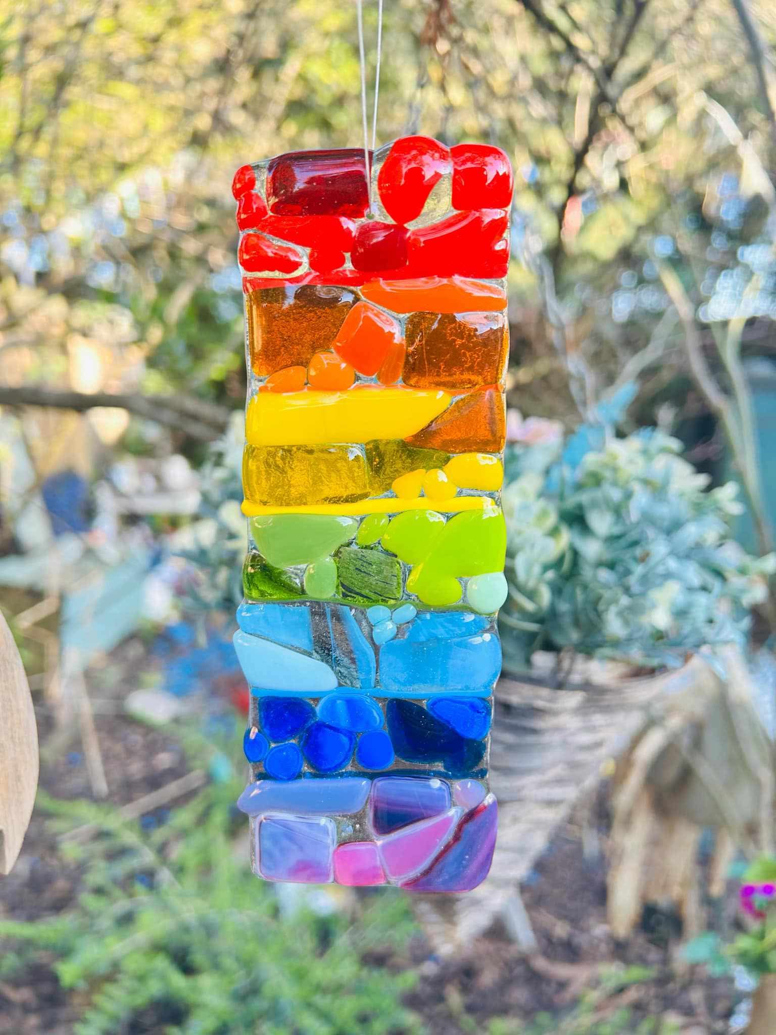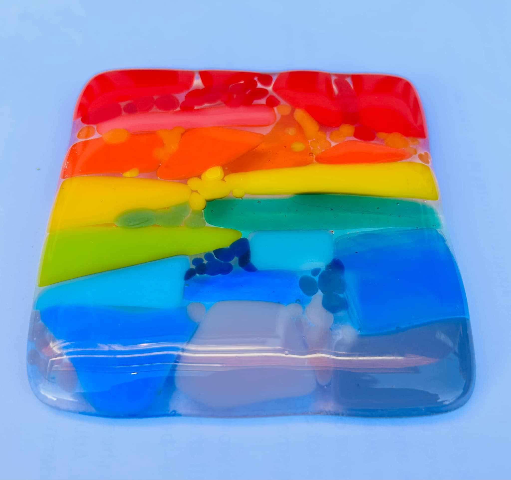 Our rainbow range includes a lovely bird, approximately 8cm across, £8.50, suncatcher 4cm x 20cm £8, an 11 cm square coaster £12. To order contact smartsy@hotmail.co.uk / 07565449695